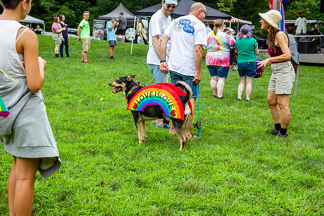 We are a proud sponsor of our local pride event! Take a look at our cute baby Dyson in his rainbow costume.